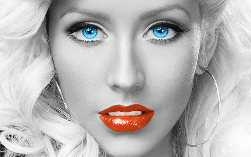 I learned how to work with Photoshop. First, I made the picture of Christina Aguilera black and white. I then changed the color of her eyes and her lips. I changed her eyes like a crystal blue and her lips pink-red with the hue and saturation.
