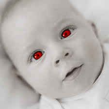 I used photoshop to creat a before and after picture. I made the picture black and white and I colored the babys eyes red.