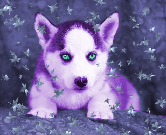 Before I worked on this website I worked with Photoshop.In Photoshop I made a normal looking puppy picture into a professional cool looking puppy picture. I made the puppy all purple,made the eyes aqua blue, and put some leaves around it.