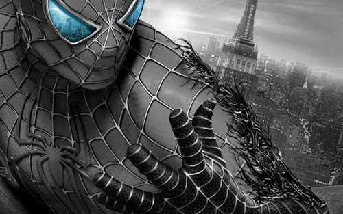 The before and after picture were used in photoshop. I made the picture sepia and, used the lasso tool to color the lense on spiderman.