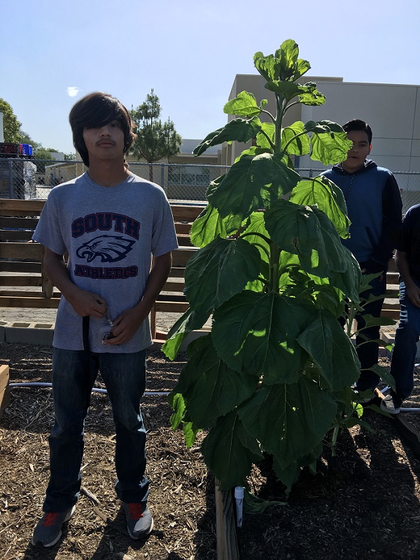Picture of me standing next to the sun flower I grew since it was a seed.