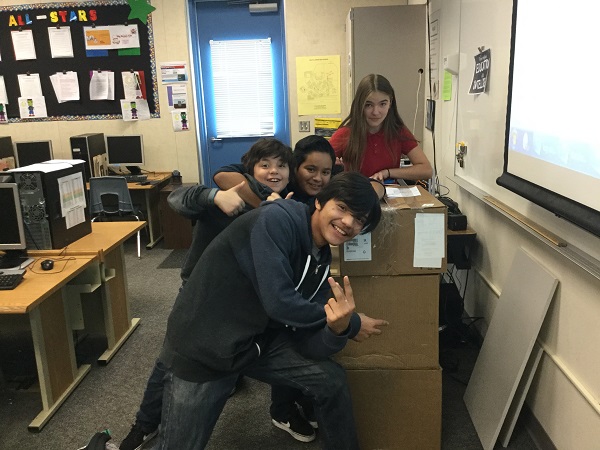 Picture of me and some classmates after we got our new keyboards.
